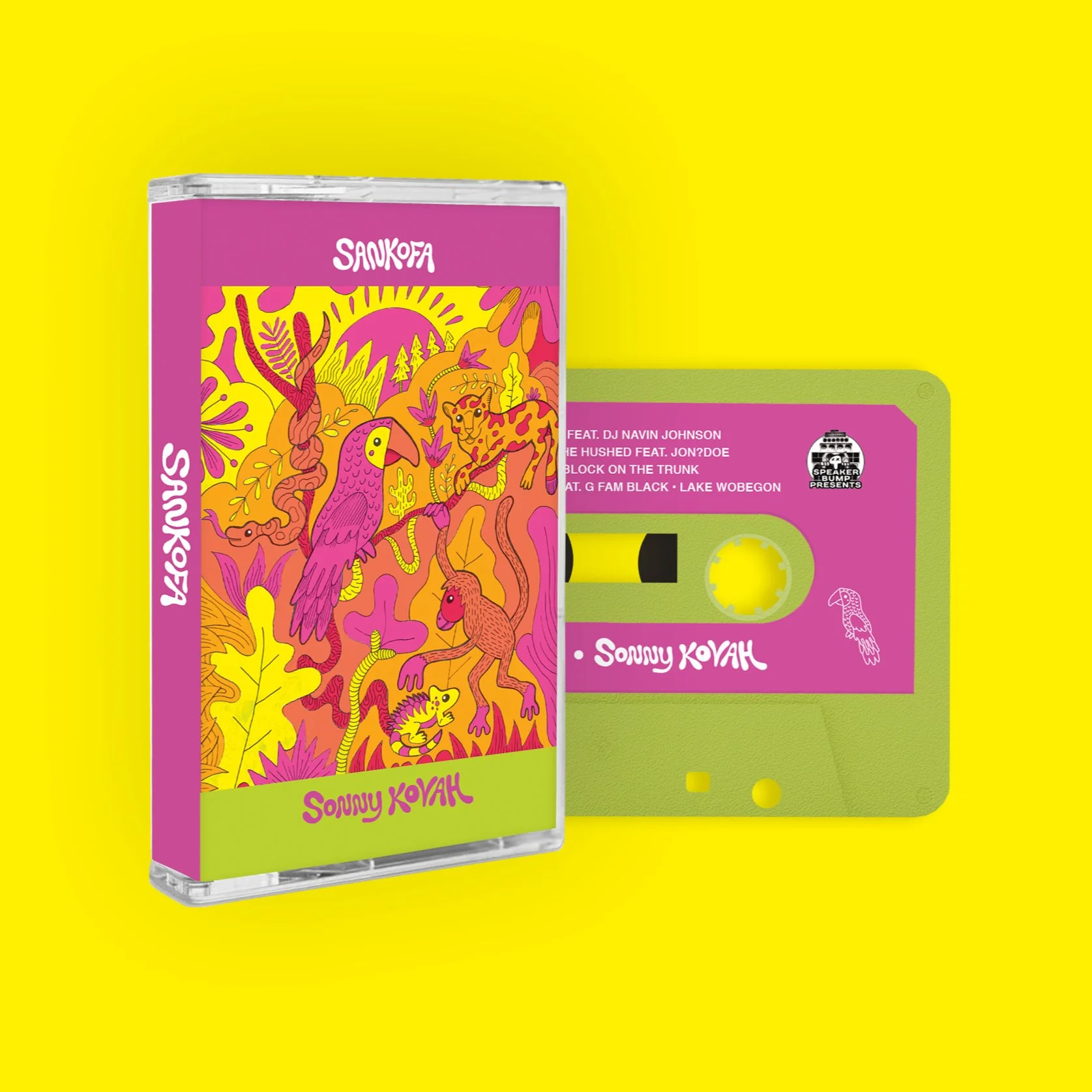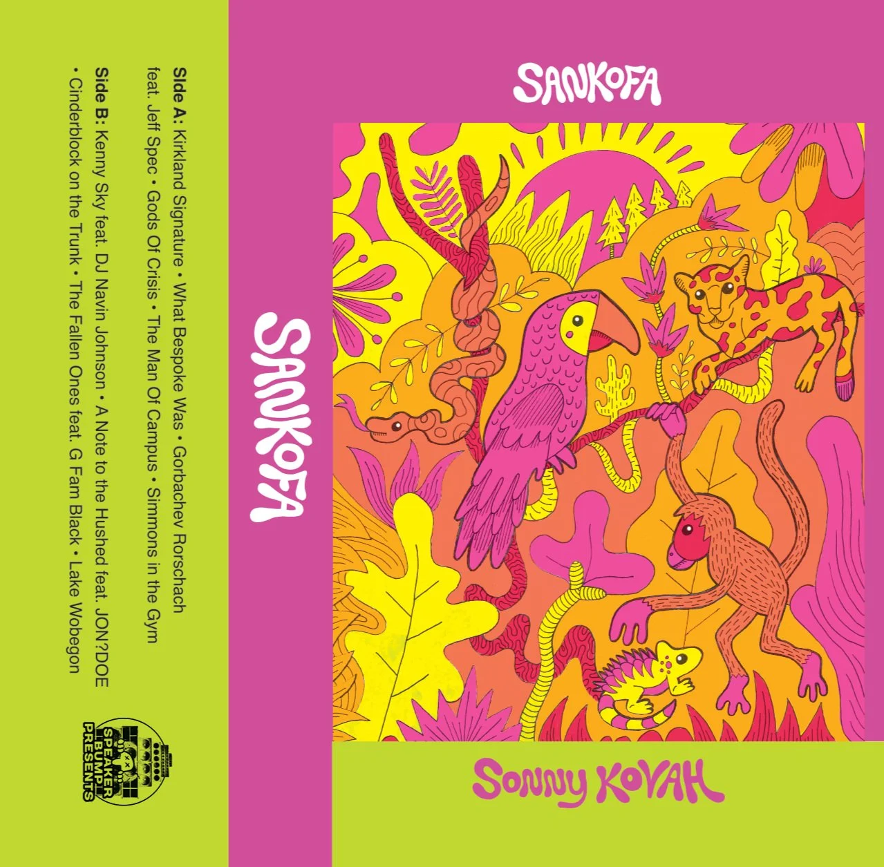 For this Sankofa - Sonny Kovah album cover, I was given the directive that it needed to fit the theme of tropical, which guided the overall design and was influenced by the sample choices within the albums production. To capture that essence, I used vibrant, warm colors— lush greens, deep reds, vivid purples, and bright oranges—that immediately evoke a tropical paradise. The color palette was carefully chosen to reflect the laid-back yet vibrant feel of tropical landscapes, while also giving off an inviting, sunny vibe.